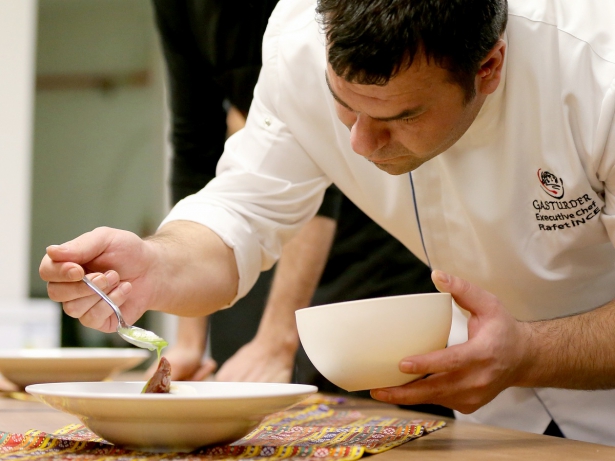 Şef Rafet İnce ise, tabak sunumlarının inceliklerini paylaştı. Tablo gibi tabaklar ile Gaziantep mutfağının önde gelen şeflerine farklı bir ufuk açtı.