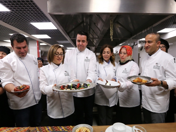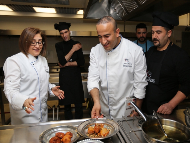 Eğitim öncesinde MUSEM’de ünlü aşçılar tarafından hazırlanan yemek sunumlarını inceleyen Büyükşehir Belediye Başkanı Fatma Şahin, daha sonra GASTURDER ekibiyle birlikte açıklamalar yaptı. İstanbul’dan gelen ünlü şeflerin de katkıları ve vizyonuyla Gaziantep mutfağını daha da ileriye taşımak için eğitim çalışmalarının devam edeceğini belirten Şahin, “Şehrimizde gıda sektöründe hizmet veren otel, lokanta gibi alanlardaki yemek aşçıları ve şeflere buraya gelerek milli aşçılarımızdan teorik bilgiler öğreniyorlar. Bu işin özünü öğrenmek gerekiyor. Az önce ben sağlıklı beslenme ve hijyenik konulu bir eğitime katıldım” diye konuştu.