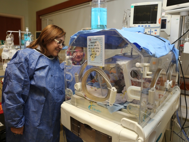 Muhammed Ali ve Yusuf Ziya adı verilen bebekleri, doğum yapılan özel hastanedeki küvezlerinde ziyaret eden Şahin, bebekler ve anne hakkında doktorlarından bilgi aldı.