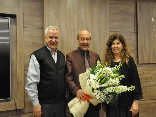 Söyleşinin ardından araştırmacı-tarihçi Asım Mıhçıoğlu ile Gaziantep Büyükşehir Belediyesi Kültür ve Sosyal İşler Daire Başkanı Hülya Yıldız, Prof. Dr. Mehmet Çelik’e çiçek verdi.