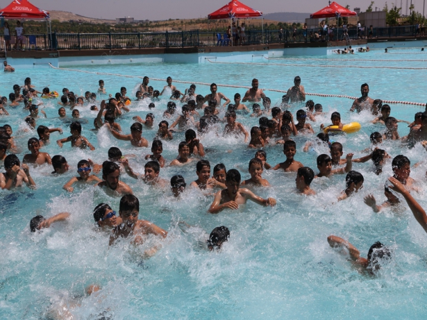 Şehrin değişik bölgelerinden otobüslerle gelen kursiyer öğrenciler; eğitmenler eşliğinde yüzmeyi öğreniyorlar. Kademe kademe yapılan yüzme kursu 18 ağustos tarihine kadar devam edecek.