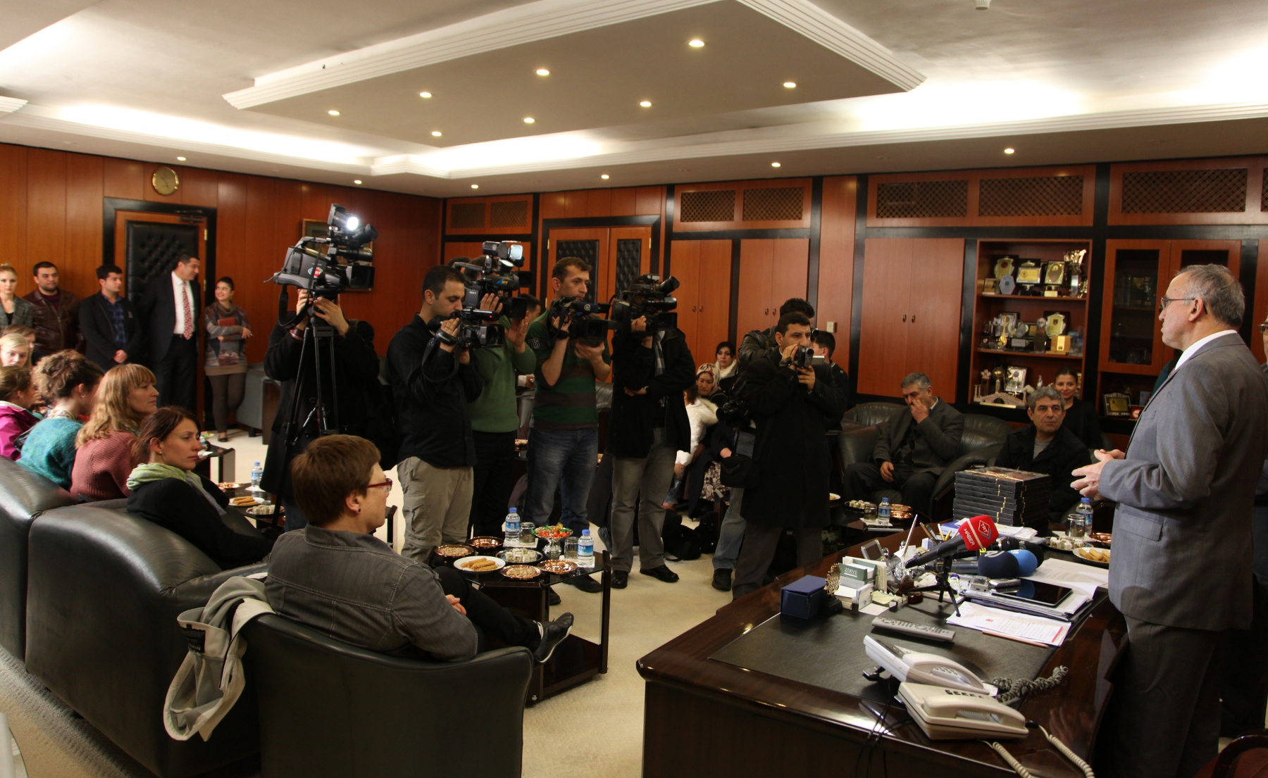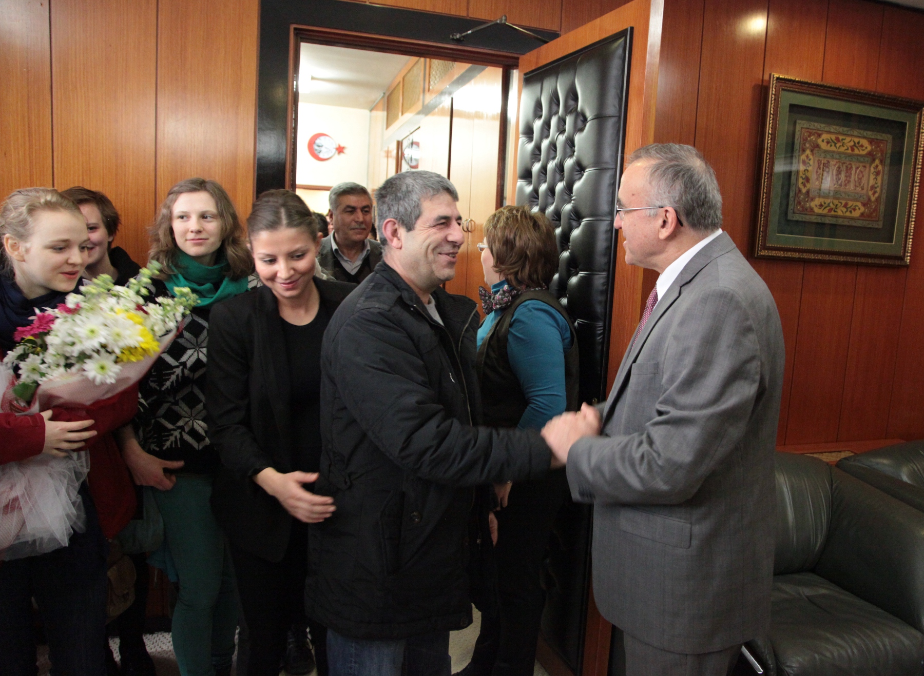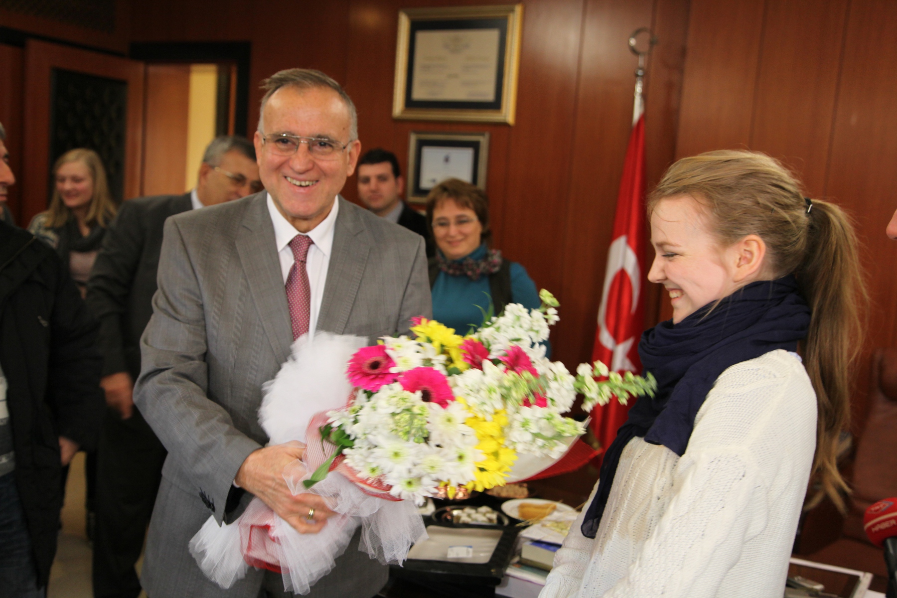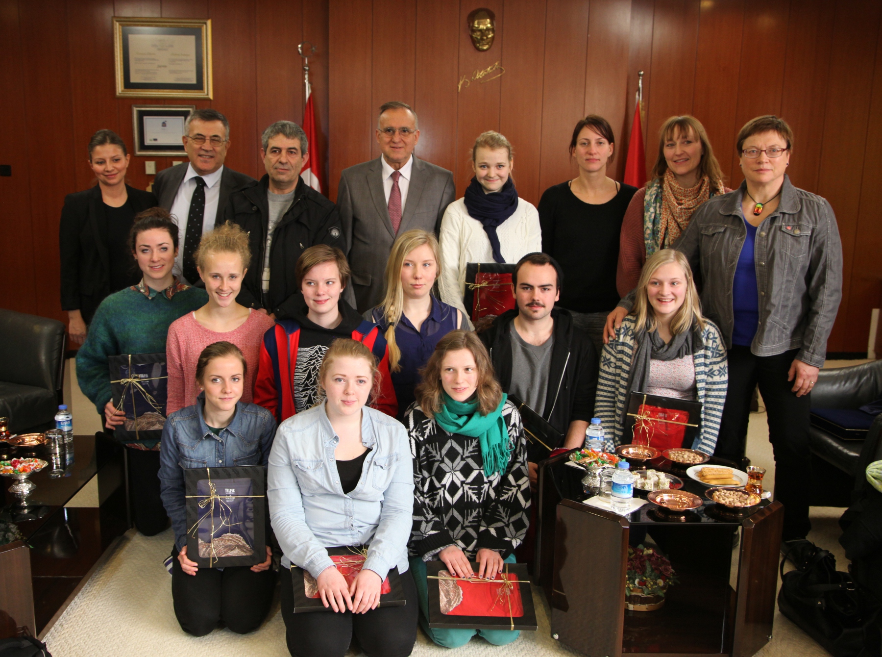 Throndheim’deki hapishanedeki mahkumların eğitim programlarından da kendilerinin sorumlu olduğunu söyleyen Hundstad, Daha sonra eğitim alan bin 250 kişilik mahkum tarafından hazırlanan bir el yapımı cam tabağı Başkan Güzelbey’e hediye eden eğitmen Hundstad’e, Güzelbey de Gaziantep kalesi ve baklavasından oluşan bir plaket takdim etti. Güzelbey, Gizem’in arkadaşlarına ayrıca üzerinde Zeugma resmi olan birer tişört hediye etti.