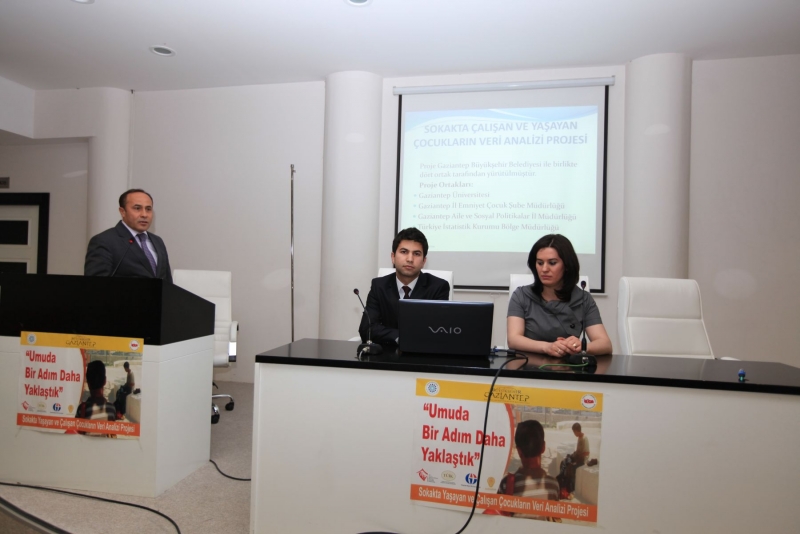Gaziantep Büyükşehir Belediyesi'nin öncülüğünde, İpek Yolu Kalkınma Ajansı'nın mali desteği ile gerçekleşen projeye, Gaziantep Aile ve Sosyal Politikalar Müdürlüğü, İl Emniyet Müdürlüğü, TUİK Bölge Müdürlüğü ve Gaziantep Üniversitesi destek veriyor. Büyükşehir Belediyesi Çetin Emeç Salonu'nda düzenlenen, 'Sokakta Çalışan ve Yaşayan Çocukların Veri Analizi' projesinin kapanış kokteyline, Gaziantep Vali Yardımcısı İbrahim Yurdakul, Şahinbey Kaymakamı Uğur Turan, Şehitkamil Kaymakamı Mehmet Aydın, Aile ve Sosyal Politikalar İl Müdürü Mehmet Emin Korkmaz, Çocuk Şube Müdürü Tuncay Kaplan, Büyükşehir Belediyesi Sağlık İşleri Daire Başkanı Muhtar Akyol, Büyükşehir Belediyesi Genel Sekreter Yardımcısı İbrahim Evrim ile çok sayıda davetli katıldı.