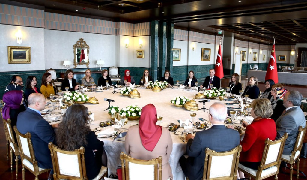 Cumhurbaşkanlığı Sarayı’nda kadına yönelik şiddet konusunun ele alındığı Cumhurbaşkanlığı Sofrası’nda Erdoğan, akademisyenler, konusunda uzman isimler, STK başkanları ve gazetecilerle bir araya geldi.