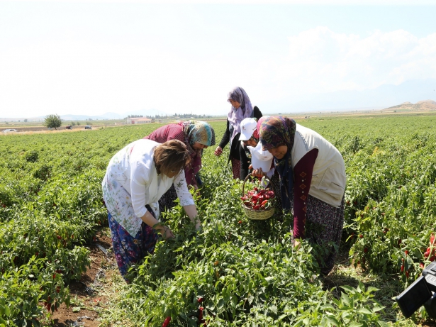 Konuşmaların ardından, başkan Şahin ve protokol biber hasadına katıldı.