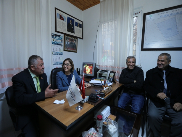 Vatandaşlarla hasbihal etmek, mahallelerin sorunlarını yerinde görmek amacıyla mahalle ziyaretlerini aksatmayan başkan Şahin, hafta sonu mesaisine Gazikent Mahallesi’nden başladı. Gazikent Mahalle Muhtarı Mustafa Bişkin’i muhtarlıkta ziyaret eden Şahin, muhtarın isteklerini ve şikayetlerini dinledi, mahalle hakkında bilgiler aldı. Başkan, mahallelinin toplu taşımada yaşadığı sıkıntıların giderilmesi için ekibine talimat verdi. 2020 yılında; Atakent, Belkıs, Burak ve Gazikent Mahalle muhtarlarıyla toplanmayı düşündüğünü aktaran başkan Şahin, toplu taşıma araçlarının; güzergâhı, sefer sayısı ve otobüs durakları konusunda iyileştirme çalışmalarının en kısa sürede başlayacağını söyledi.