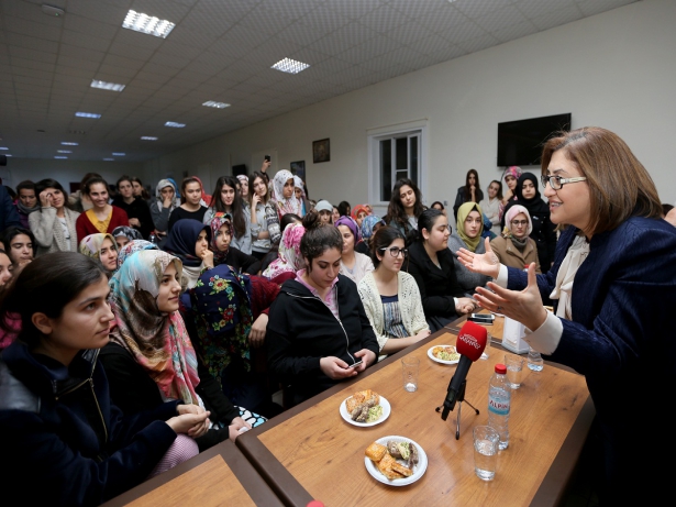 “Bu yurtta çok ciddi bir kapasite var. Bu kapasitete birlikte yaşamak, sizin ihtiyaçlarınızı, yaşam şeklinizi, çalışma imkanlarınız, bütün sosyal donatılarınızla ilgili kısımda neler yaptık, neler yapmalıyız. Ailelerinizi, annenizi, babanızı, sizi yetiştiren ailelerinizi kutluyorum, sizi kutluyorum. Buralara gelmek öyle kolay değil. O puanları almak, o okullara yerleşmek, burada yaşamak, şehir değiştirmek bunların hiçbiri kolay değil. Ben kendi yaşantımdan bunu birebir yaşamış bir kardeşiniz, ablanızım, kabul ederseniz ikinci annenizim.”