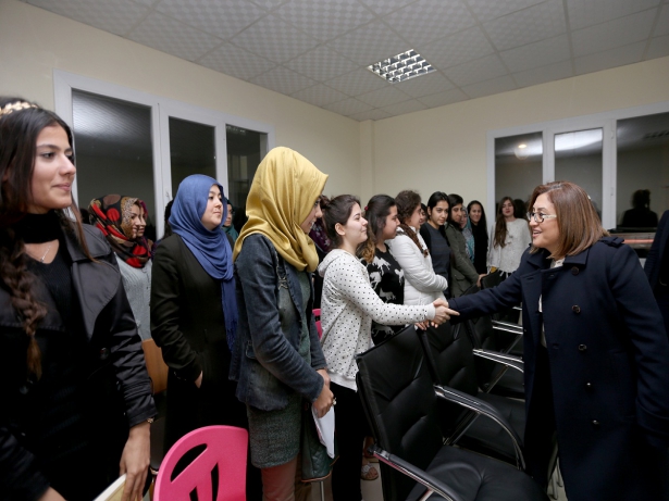 Gaziantep Üniversitesi Rektörü Prof. Dr. Yavuz Coşkun’un da eşlik ettiği ziyarette, öğrencilerle tek tek ilgilenen Şahin, onlarla sohbet etti.