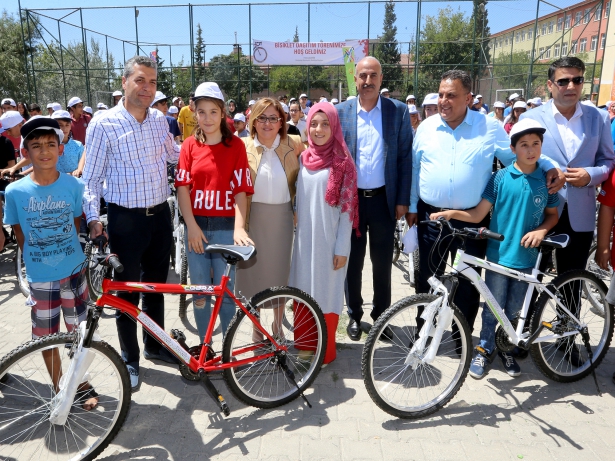 Konuşmaların ardından Başkan Şahin, öğrencilere bisikletlerini dağıttı.