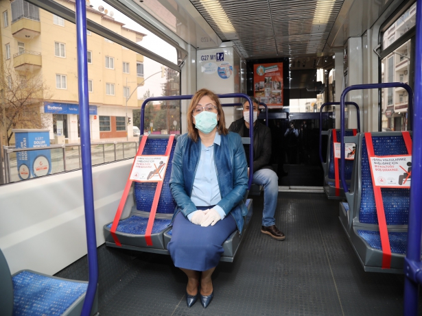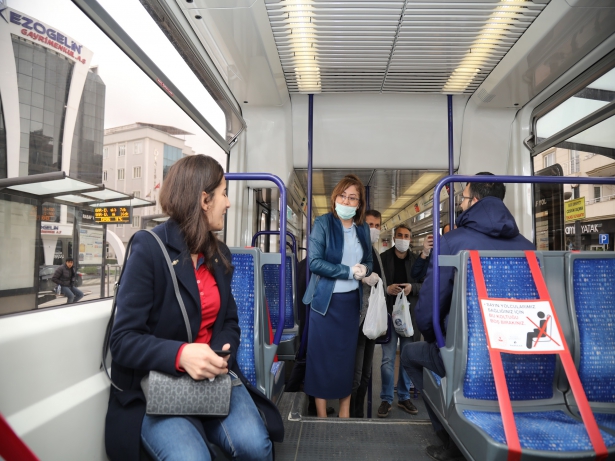 Ekibiyle beraber, virüsün Türkiye’de görüldüğü ilk günden bu yana yoğun mesayi harcayan Başkan Fatma Şahin, çalışmaları yerinde görmek için denetime çıktı. Tamvay ve otobüs duraklarını inceleyen Şahin, araçlarda İçişleri Bakanlığı tarafından yayınlanan genelgeyle toplu taşımalara Türkiye’de ilk defa uygulanan sosyal mesafe şeritlerini yolculuk yapan vatandaşlara anlattı. Ayrıca Corona salgınına karşı alınna tedbirleri ve çalışmarı iletti. Başkan Şahin, Halkın bilinçlenmesi ve bu konua hareket etmesi gerektiğini dile getirdi. Zabıta ekipleriyle alışveriş marketlerde etiket kontrolü yaptı. Genelge kurallarına uyulup uyulmadığa baktı. Gıda bankasına geçerek, hazırlanan kolileri ve son durumu yerinde gözlemledi