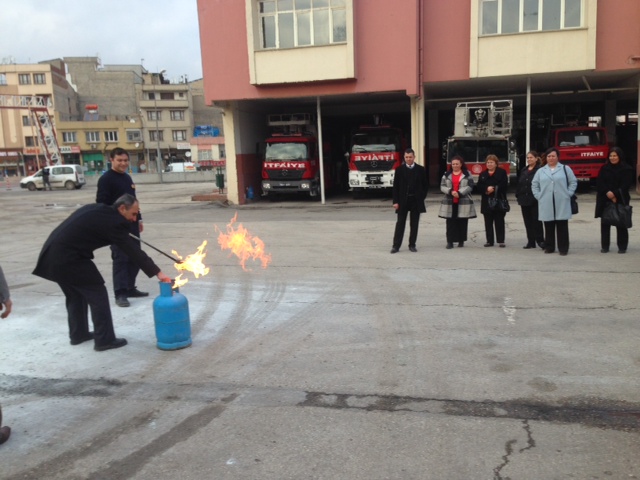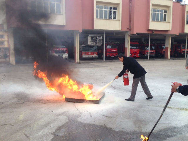 İtfaiye Eğitim ve Denetim Şube Müdürü Mustafa Koldar tarafından belediye hizmet binalarında ve kendi evlerimizde meydana gelebilecek her türlü yangının söndürülmesi, doğalgaz ve LPG kaçaklarına nasıl müdahale edileceği, yanan bir canlıya nasıl müdahale edilmesi gerektiği, binaların en güvenli şekilde tahliye edilmesi gerektiği, binalarda alınması gereken yangın önlemleri ve yangın söndürme sistemlerinin kullanılması konularında görsel ve tatbiki eğitim verildi.