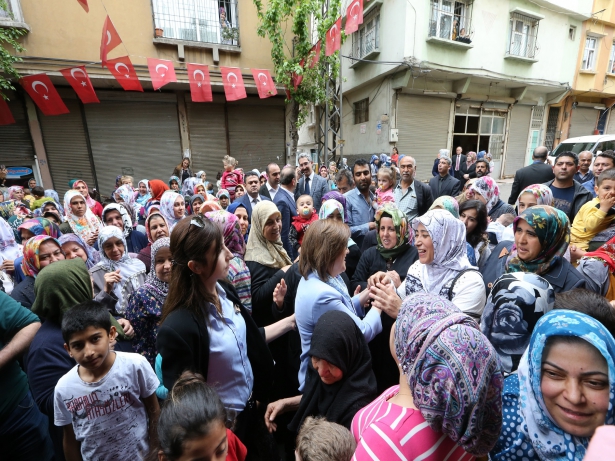 Mahalle sakinlerinden Hatice Demir ise “Başta Cumhurbaşkanımız Recep Tayyip Erdoğan olmak üzere Fatma Hanımı ve diğer başkanlarımızı çok seviyoruz. Çok memnunuz, kendisini aramızda gördüğümüzden dolayı çok memnunuz. Başarılarının devamını diliyoruz. Kendisini karşılamamızdaki bu kalabalık daha az. Ramazan’dan dolayı ve haberi olmayanlar gelemedi. Kendisi burada çok seviliyor bu sevgiden daha fazlasını hak ediyor” ifadelerini kullandı.