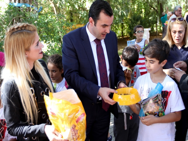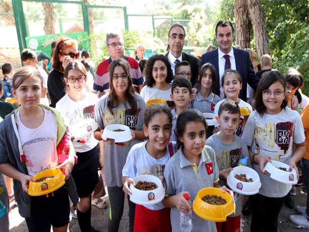 Konuşmaların ardından öğrencilere yem kapıyla köpek ve kedi maması dağıtıldı.