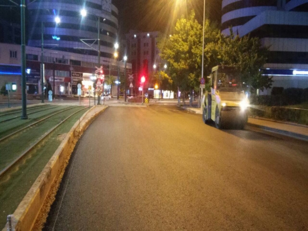 Yıpranan mevcut asfalt trimer ile kazınıp yerine anında yeni asflat serimi yapıldı. Asfaltın binder tabakasının serimi tamamlandıktan sonra aşınma tabakası olarak Gaziantep’te ilk kez modifiye asfalt serimi gerçekleşti. Ana arterlerin yanı sıra tramvay güzergahında da çalışmalar yapan ekipler, yeni asflat ile birlikte kaldırımları da yenileyerek araç ve yaya trafiğine daha kullanılır hale getiriyor.