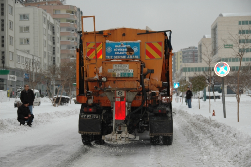 Ana arterlerde şu ana kadar bir sorun yaşanmadığını belirten Başkan Güzelbey, Cumartesi öğle saatlerinde başlayan kar yağışının ardından, Gaziantep Büyükşehir Belediyesi ekipleri olarak 10 adet tuz robotu ve tuzlama ekibi, 700 Ton tuz, 13 greyder, 20 kamyon, 25 büyük ve küçük ölçekli kepçe, 30 kürekli ekip, 4 adet kurtarıcı ve çekici, 25 saha formeni ve 25 Makine İkmal personeli ile 24 saat esas olmak üzere toplam 72 Araç ve 152 Personel ile Gaziantep genelinde ara ve ana arterlerde karla mücadele çalışmalarımız devam etmektedir diye konuştu.