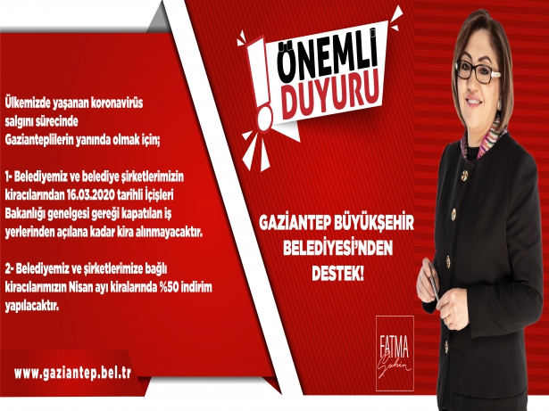 Dünya gündeminde büyük ses getiren ve küresel anlamda bir salgın haline dönüşen Corona Virüs (COVİD-19) nedeniyle İçişleri Bakanlığı’nın yayımladığı genelge çerçevesinde geçici bir süreliğine kapatılma kararı alınan iş yerleri için Büyükşehir Belediyesi devreye girdi. Bu kapsamda büyükşehire bağlı şirketlerin işletmesini üstlenen kiracılarından işe başlangıç süresi boyunca kira alınmayacak, nisan ayında ise yüzde 50 indirim yapılacak.
