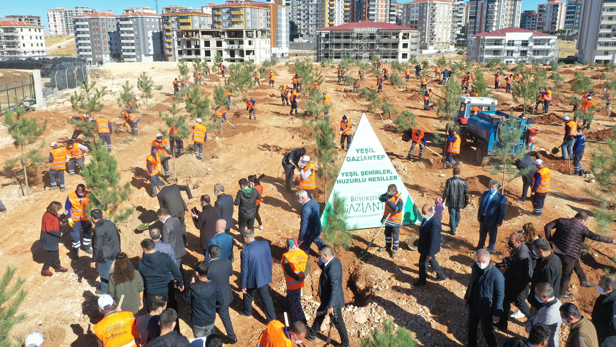 Gaziantep Büyükşehir Belediyesi “Yeşil Şehirler, Huzurlu Nesiller” Projesi kapsamında şehir merkezinde her hafta gerçekleştirdiği ağaçlandırma çalışmasında sıradaki durağı Fıstıklık Mahallesi oldu. Büyükşehir Belediyesi ile Gaziantep Akaryakıt Bayileri Derneği (GABDER) arasında imzalanan işbirliği protokolünce 50 bin metrekarelik alana fidan dikimi gerçekleşti.