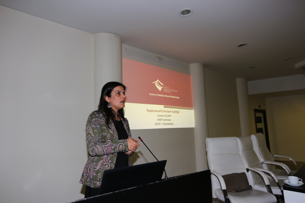 Aile ve Sosyal Politikalar Bakanlığı’ndan aile ve sosyal politika uzmanı Ceren Uçar tarafından verilen eğitimde, alie yapıs, çocuk, genç ve kadın-erkek ilişkileri anlatıldı. Kadın ve erkeklerin sosyal yaşamda karşılaştıkları zorlukların yanı sıra özellikle kadınların elde edemedikler eşitsizlikten bahseden Uçar, günümüzde kadın ve çocuk eğitimlerinin yaygınlaştırılması gerektiğine vurgu yaptı.