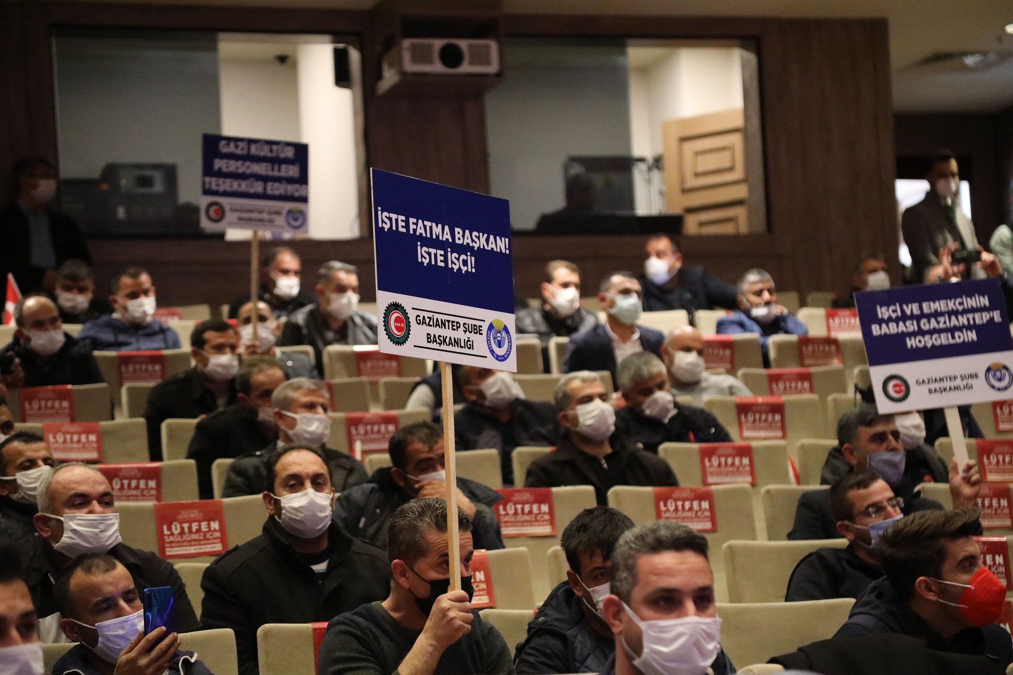 HAK-İŞ Konfederasyonu ve Hizmet-İş Sendikası Gaziantep İl Başkanı Halil İbrahim Tanrıöver, “HAK-İŞ Konfederasyonu’muza bağlı Hizmet-İş ve Özgüven-Sen sendikalarımız ile Gaziantep büyükşehir Belediyesi’ne bağlı, GAZİBEL, GAZİAĞAÇ, Gazi Danışmanlık, GAZİKÜLTÜR bünyesinde görev yapan 6317 personel için toplu iş sözleşmesi için burada bulunmaktayız. HAK-İŞ Konfederasyonu, kentte önemli bir gücü temsil etmektedir. Bu başarımızı da kuşkusuz siz üyelerimizden aldığımız gücün yanı sıra Gaziantep Büyükşehir Belediye Başkanı Fatma Şahin’in de büyük destekleri oldu. Gaziantep şube yönetimi olarak göreve geldiğimiz günden beri şehrimize daha iyi bir hizmet verebilmek ve personellerimizin refah ve huzur içerisinde çalışabilmesi adına var gücümüzle gayret ediyoruz” ifadelerini kullandı.