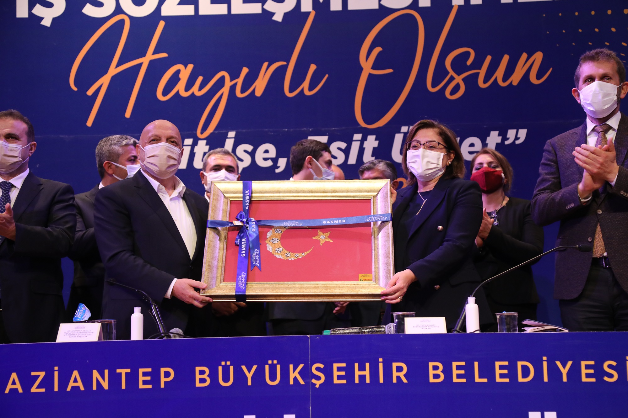 İmza töreninde Büyükşehir Belediye Başkanı Fatma Şahin, HAK-İŞ Konfederasyonu ve Hizmet-İş Sendikası Genel Başkanı Mahmut Arslan ve Gaziantep İl Başkanı Halil İbrahim Tanrıöver hazır bulundu.