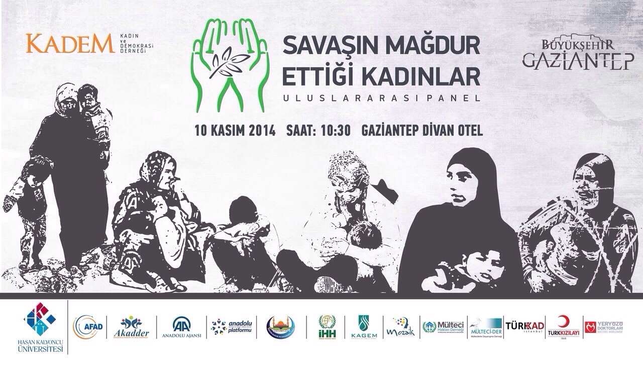 Gaziantep Büyükşehir Belediyesi evsahipliğinde ve KADEM’in organize ettiği Türk Kızılayı, AFAD, Yeryüzü Doktorları, İHH, Uluslararası Mülteci Hakları Derneği, Mültecilerle Dayanışma Derneği, TÜRKAD, Kagem, Bülbülzade Vakfı, Mozaik Kadın Derneği, Anadolu Eğitim ve Davet Gönüllüleri Platformu ve AKADDER gibi sivil toplum kuruluşlarının destek verdiği "Savaşın Mağdur Ettiği Kadınlar" konulu panel 10- 12 Kasım'da Gaziantep Divan Otel'de gerçekleşecek.