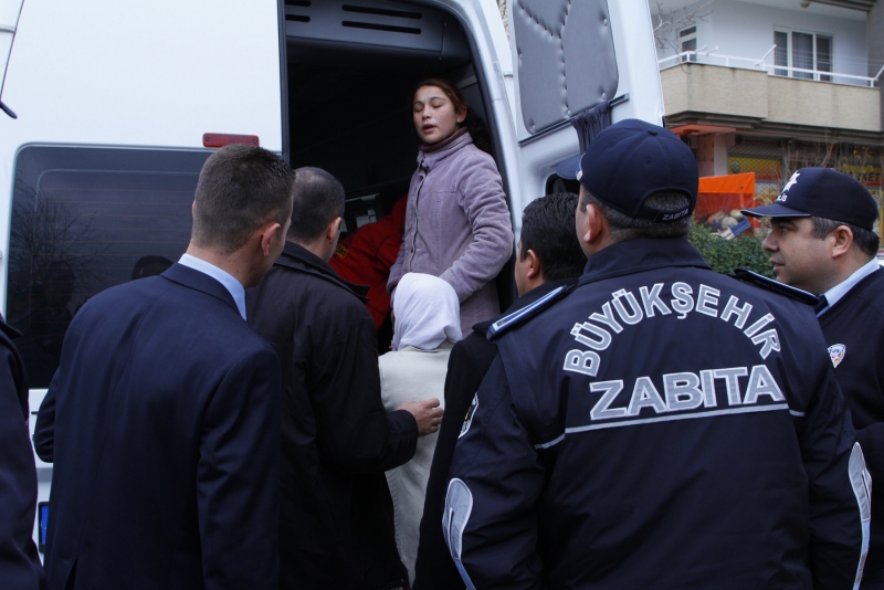 Vatandaşların arasına karışarak dilenci avına çıkan zabıta memurları cami önlerinde dilenmek isteyen dilencilere geçit vermedi. Çocuklarıyla birlikte cami önünde dilenen kadınlar tek tek toplandı. Bir cami avlusunda namazın bitmesini bekleyen 8 dilenci ise zabıta memurlarına direndi.