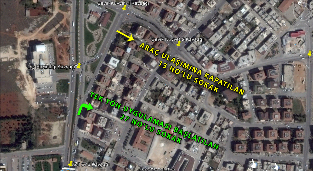Çevik Kuvvet bölgesinde yaşanan trafik sıkışıklığına çözüm bulmak amacı ile Ulaşım Planlama ve Raylı Sistemler Daire Başkanlığı tarafından Abdülkadir Aksu kavşağında doğu-batı istikametinde (60 nolu cadde üzerinde) sola dönüşler yapılamayacak. Çevik Kuvvet-1 kavşağında kuzey-güney istikametinde (Üniversite Bulvarı üzerinde) sola dönüşler yapılamayacak. Böylelikle; kırmızı ışıktaki bekleme süresi düşürülerek araçların kavşağı terk etme süreleri artırılmış olacak. Sola dönüşü yasaklanan araçların erişimini kısıtlamamak için Üniversite Bulvarı üzerinde 57 nolu sokak ile 24 nolu sokak kesişiminde sinyalizasyonlu bir kavşak oluşturuldu. Diş Hekimliği kavşağından düşük hızlarda U-dönüşü yapan araçlar için ise daha yüksek kapasiteli bir U-dönüşü alanı oluşturuldu.