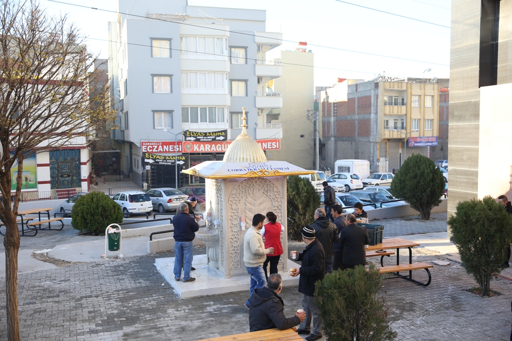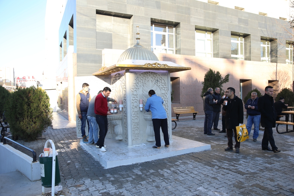 Sabahın erken saatlerinde hastanede işi olan, yakınlarını görmeye gelen veya oradan geçen vatandaşlar, çeşmeden bardaklara doldurdukarı çorbadan istedikleri kadar içebiliyor.