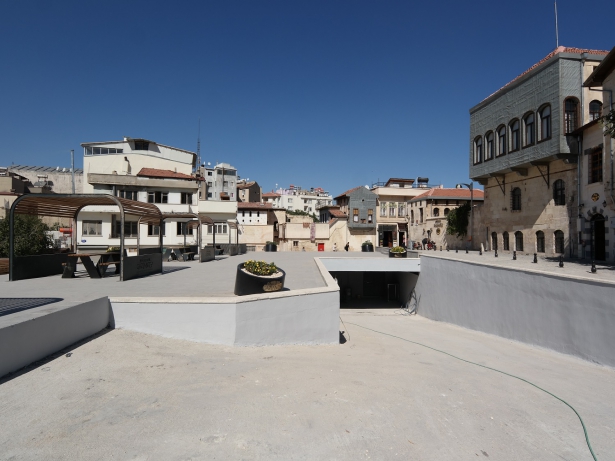 Gaziantep Büyükşehir Belediyesi Koruma Uygulama ve Denetim Büroları (KUDEB) Daire Başkanlığınca kentsel sit alanı içerisindeki otopark ihtiyacını karşılamak üzere Bey Mahallesi’nde tarihi dokuyla uyumlu, peyzaj düzenlemesini kapsayan meydan projelendirildi.