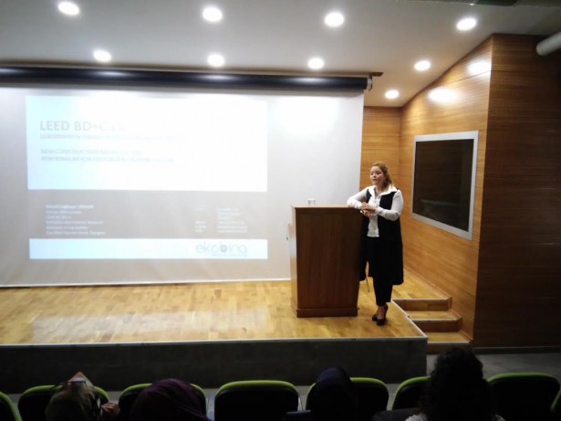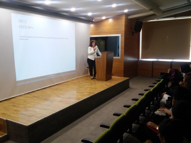 Amerikan Yeşil Binalar Derneği tarafından verilen LEED sertifikasıyla ilgili bilgilendirmeyi ise LEED uzmanı Mimar Zümrüt Arslan yaptı.