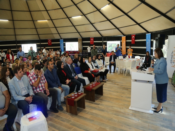 Gizem Doğan Yaşayarak Öğrenme Merkezi’nde toplanan çalıştayın açışında konuşan Gaziantep Büyükşehir Belediye Başkanı Fatma Şahin, “Siz gençleri burada ağırlamaktan mutluluk duyuyorum. KADEM’in çalışmalarındaki gücünü gördük. KADEM ailesini tebrik ediyorum. Gençlere ve insana dair her türlü problemi gönüllülükle çözmeyi hedefliyor. Sivil Toplum Örgütü olmak kolay değildir. Çünkü bu işte gönüllülük esastır. Modern dünya, sonuçla uğraşmayı bırakmamızı söylüyor. İş işten geçtikten sonra ne yaparsak yapalım sonucu değiştirmez. Bu nedenle en önemli şey, koruyucu ve önleyici tedbirlerdir. Biz bu tedbirleri zamanında aldığımızda sonuçlara etki edebiliriz. Gençlerin, koruyucu ve önleyici tedbirler hususuna dikkat etmesi gerekiyor. Çünkü her kötü sonucu değiştiren yaklaşım burada yatıyor. Doğru analizleri yapmamız için gençlerin bakış açısını öğrenmemiz gerekiyor. Dünya çok hızlı değişiyor. Bu nedenle gençlerimizin sorunlarına eğilebilmemiz için onları dinlememiz gerekiyor. Sizin bakış açınızla çözüm üretmek gerekiyor. Ancak temel sorunlarımızın başında birbirimizi dinlememek geliyor. Bizim öncelikle birbirimizi dinlemeyi öğrenmeliyiz. Sorun çözme kapasitemizi geliştirmeliyiz. O yüzden Vali Gül’le şunu söylüyoruz; ‘Her şeyi düzeltemeyiz ancak sorun çözme kapasitemizi artırabiliriz’ Dünya’da bu ve benzeri problemlerle uğraşıyor. Bizim insanı merkeze alan sosyal adaleti sağlayıcı bir modele ihtiyacımız var. Özümüze dönmeliyiz. Bugün bu çalıştayın konuştukları ve düşündükleri bizim için çok önemlidir. Biz, siz gençlerin düşüncelerinden yola çıkarak çalışmalarımızı yürütmeyi istiyoruz” diye konuştu.