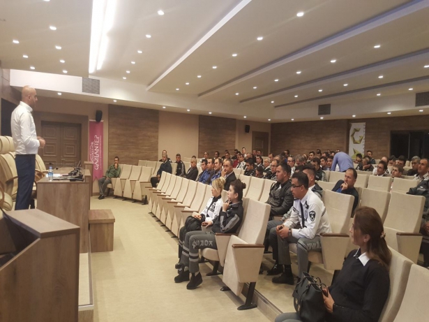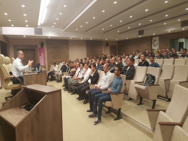 İnsan Kaynakları ve Eğitim Daire Başkanlığı’nın organize ettiği eğitimde; personele araç durdurma, kişi arama, sokak geçişleri, el yapımı patlayıcı ve bina araştırma gibi konu başlıklarında pratik bilgiler verildi. Canlı bomba ile bombalı araç kullanan kişilerin genelinde görülen davranış şekilleri aktarılmış olup, canlı bombanın yürüyüş şeklinden, psikolojisine, olay yerine yaklaşımından kıyafet tercihlerine kadar tespit edilen ipuçları ile güvenlik görevlilerinin kısa sürede olaya nasıl müdahale etmeleri gerektiği anlatıldı.