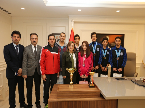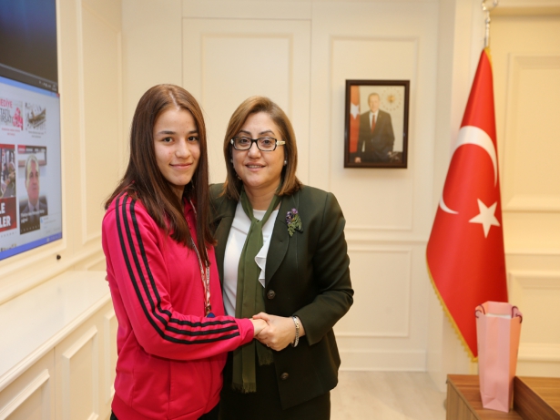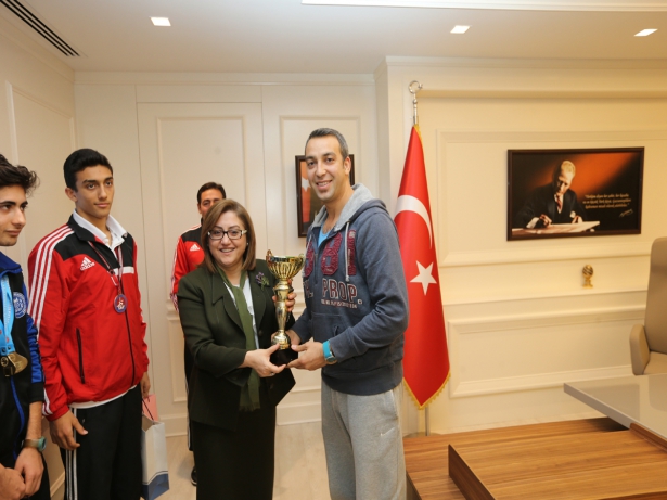 Gaziantep Büyükşehir Belediyesi Karate Takımının erkekler ve bayanlarda bireyselde Türkiye şampiyonluğu, ikinciliği ve üçüncülüğü elde eden sporcuları önceki gün Büyükşehir Belediye Başkanı Fatma Şahin’i ziyaret etti.