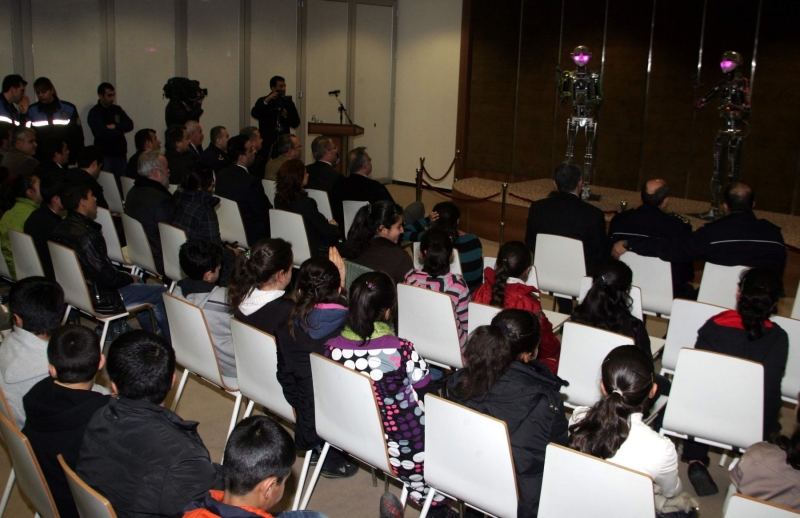 Yapılan konuşmaların ardından katılımcılar bilim merkezinde bulunan iki robotun uzay bilimi ile ilgili yaptığı sohbeti dinledi.
