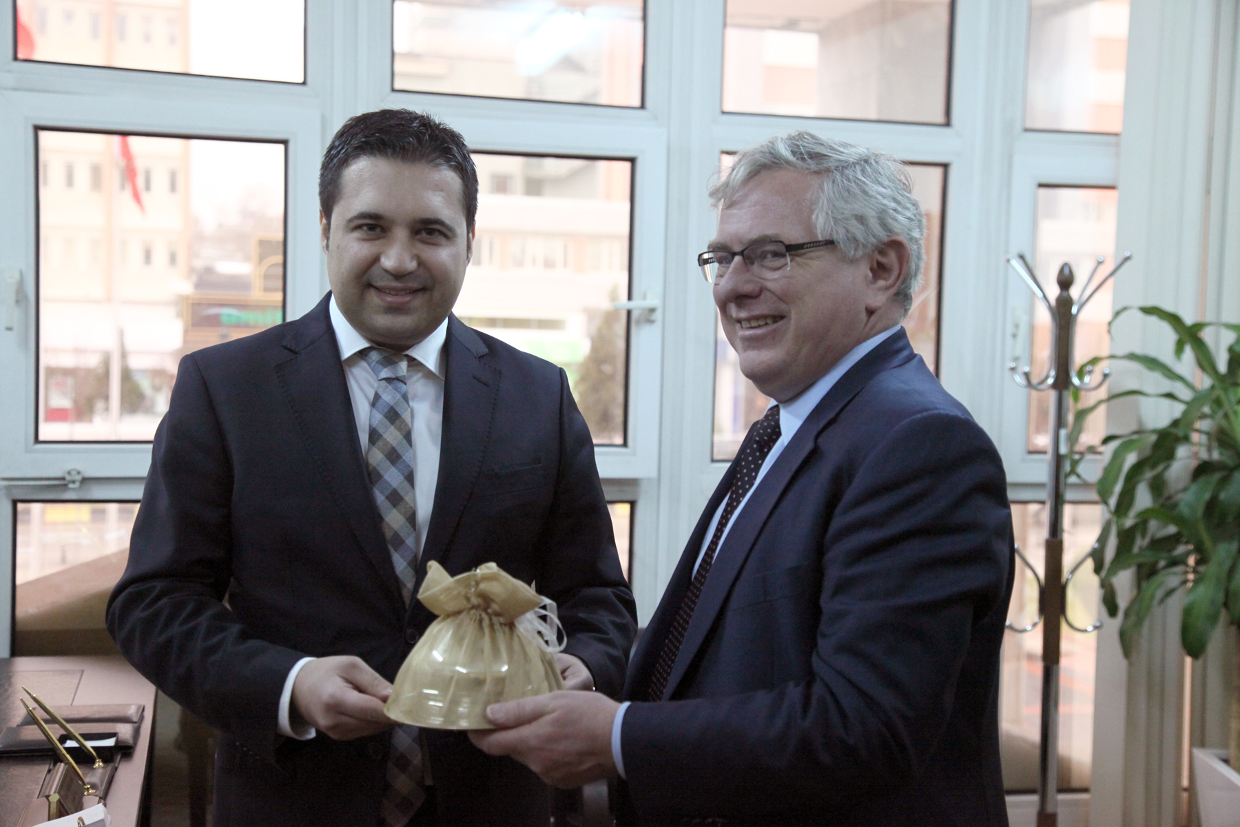 Belediye binası önünde bando ile karşılanan Büyükelçi Ruben Madsen ve beraberindeki heyet karşılıklı fikir alış verişleri ile devam etti.