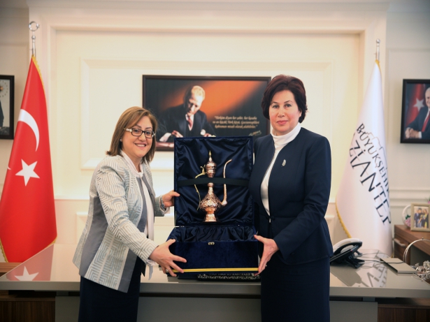 Büyükşehir Belediyesi tarafından şehre kazandırılan projeler ile ilgili de bilgiler aktaran Başkan Şahin, Danıştay Başkanı Güngör'e Gaziantep'e özgü el yapımı bakır ibrik hediye etti.