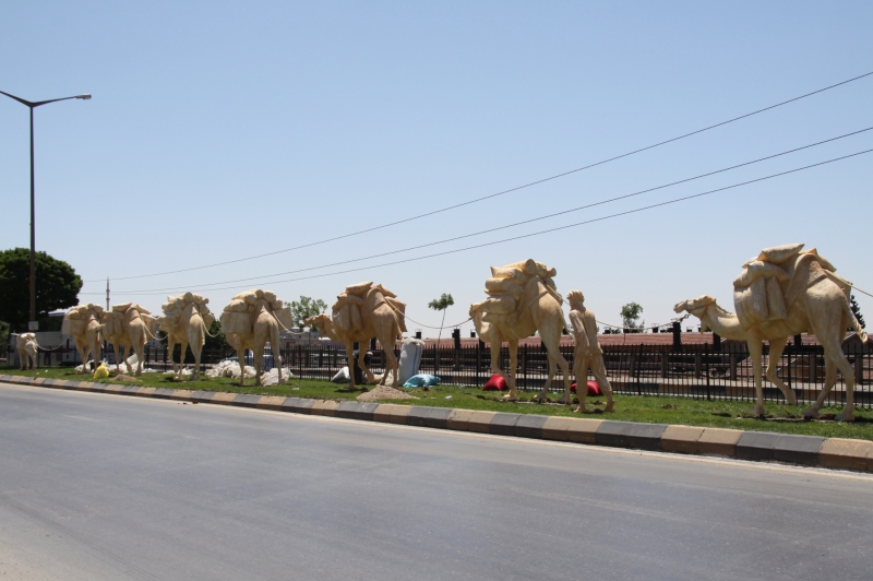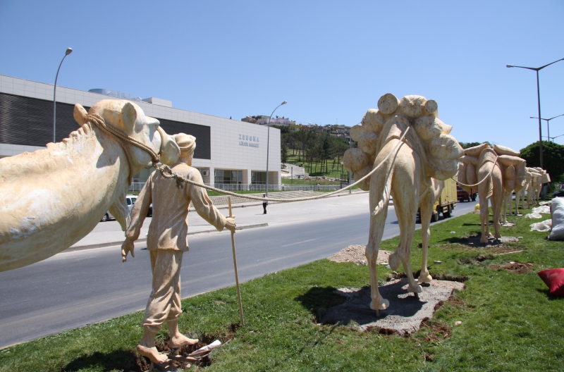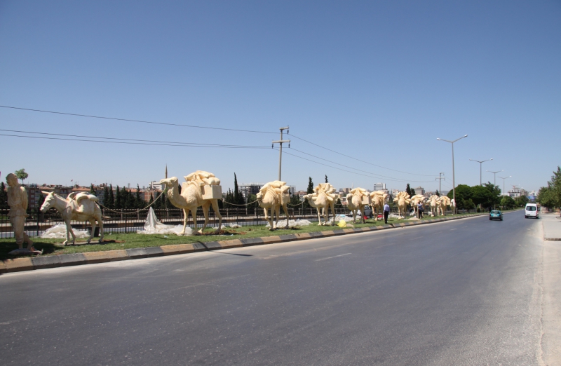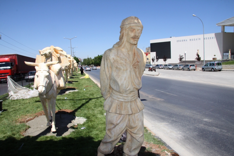 Zeugma Mozaik Müzesi karşısında, D400 Karayolu üzerindeki refüjlere yapılan insan, deve ve eşek figürü ile yıllar önce yaşanan manzara yeniden canlandırıldı.