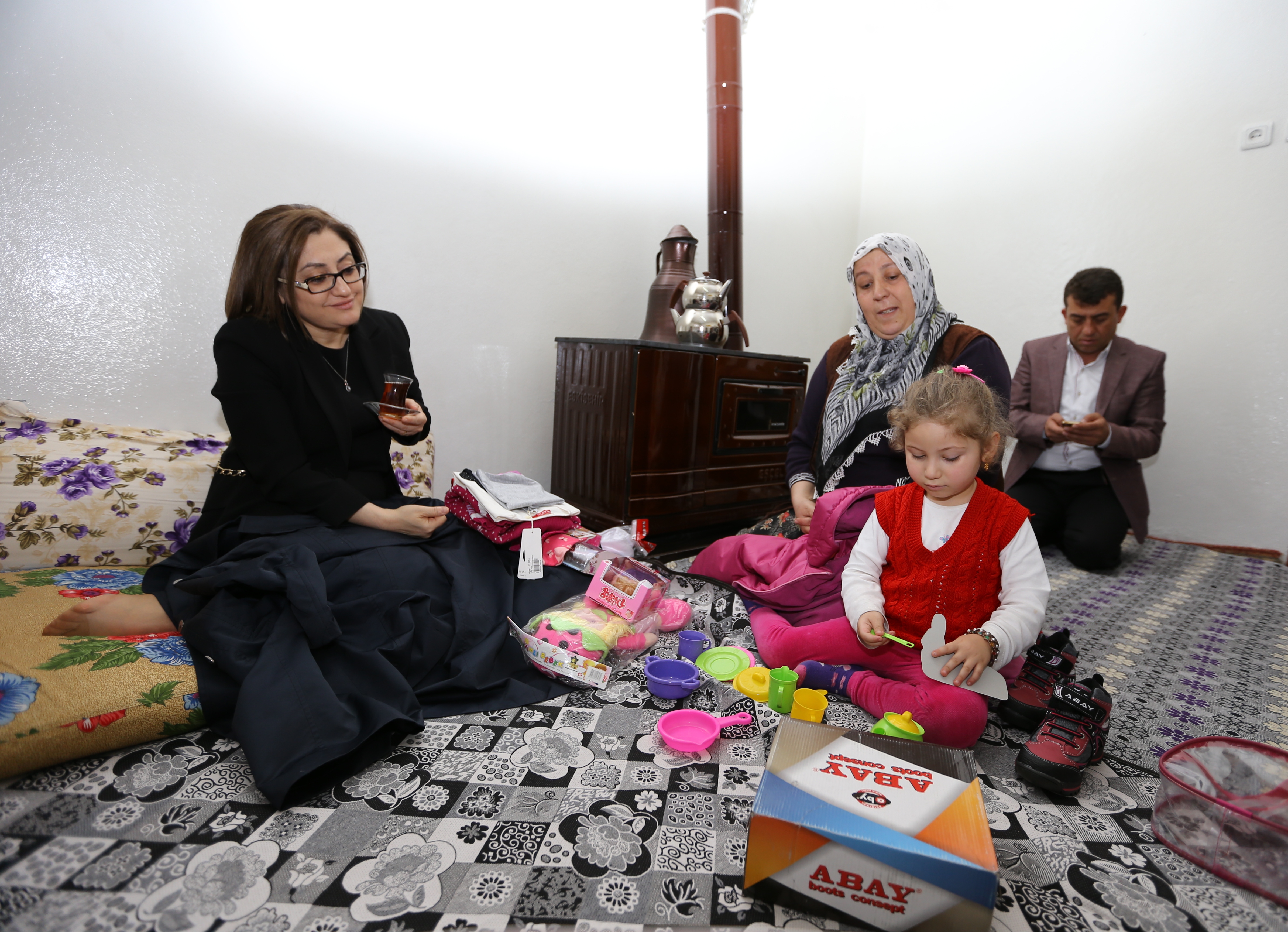Ayrıca Şirinevler Mahallesi’nde 2012 yılında eşini beyin tümöründen kaybeden ve 5 yaşındaki kızı Yaprak ile yaşayan Dünyanur Altunbaş’ı da ziyaret eden Şahin, minik kızla yakından ilgilendi.