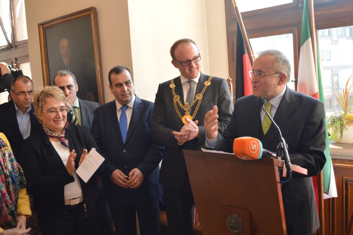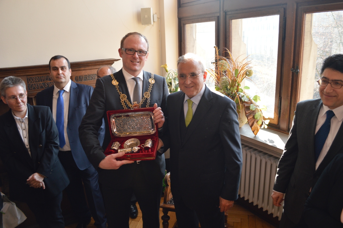 Belediye binasında gerçekleştirilen programda, Duisburg Anakent Belediye Başkanı Sören Link, Duisburg Belediye Başkanı Erkan Kocalar, Türkiye Cumhuriyeti Duesseldorf Başkonsolosu Alaattin Temür, Gaziantep Büyükşehir Belediye Başkanı Dr. Asım Güzelbey, Duisburg'ta bulunan Gaziantepliler Kültür ve Dayanışma Derneği Başkanı Sıtkı Palabıyık, Prof. Dr. Yavuz Coşkun ve kalabalık bir delegasyon üyesi hazır bulundu.
