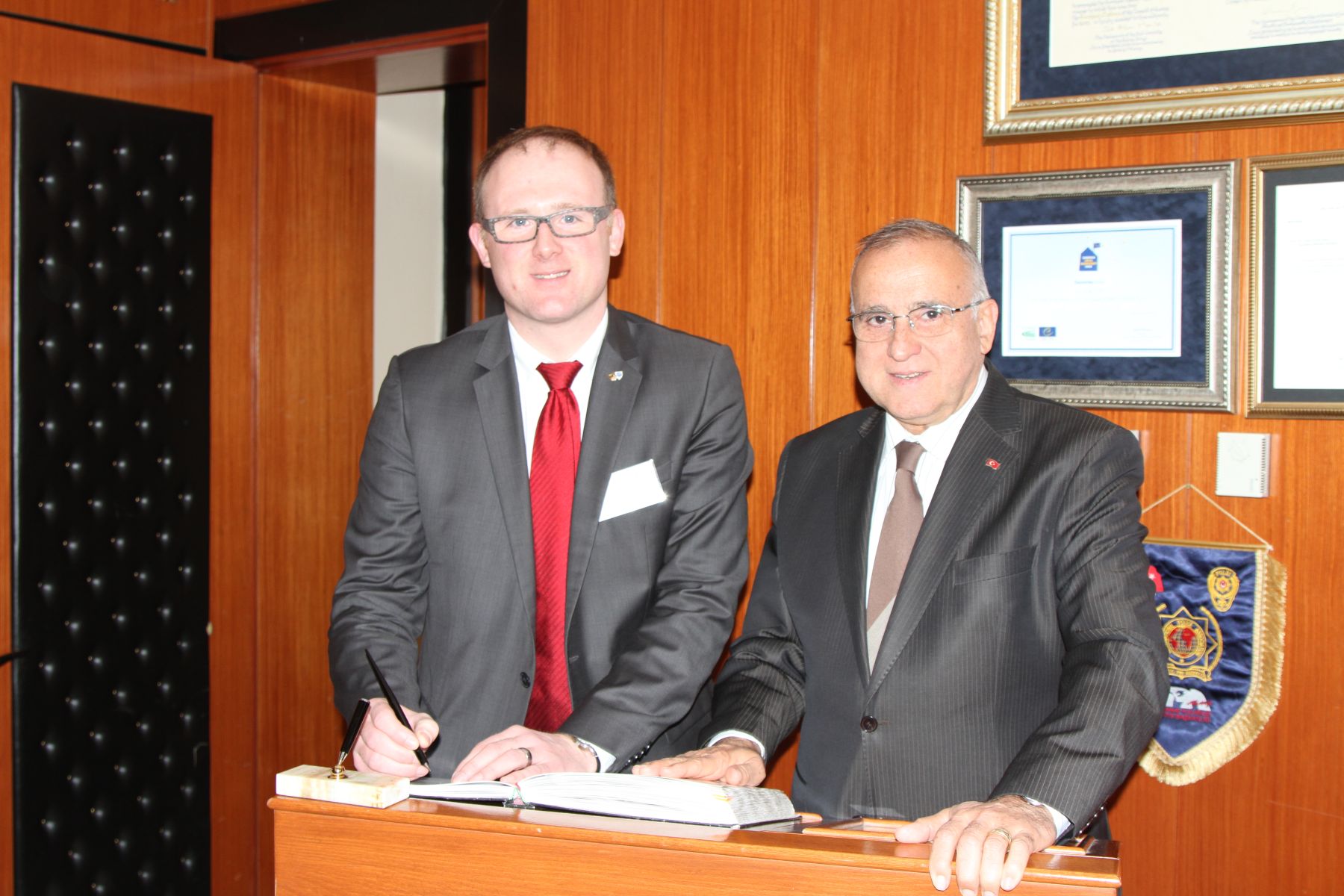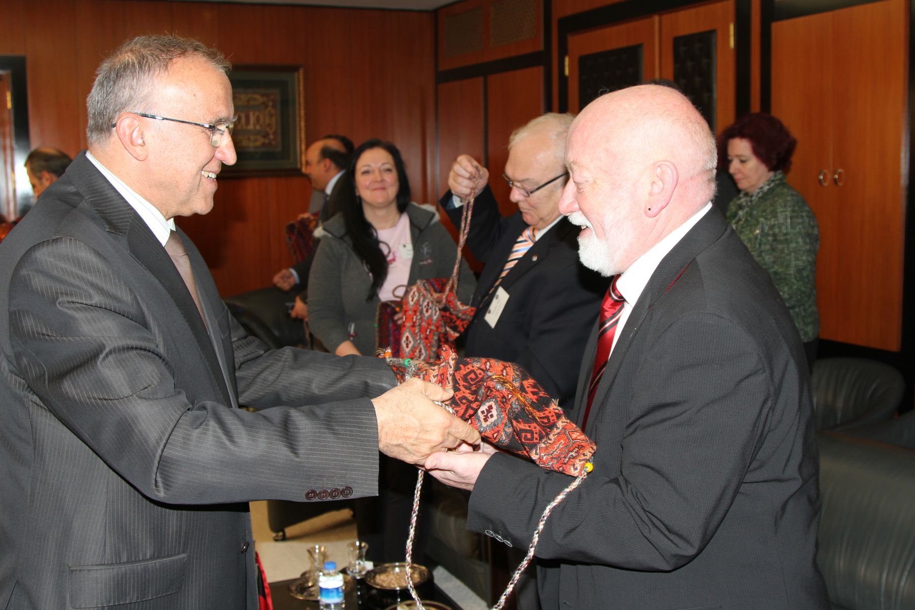Başkan Güzelbey tarafından Duisburg Belediye Başkanı Her Link Söcken’e Gaziantep’e özgü bakır bir ürün hediye edildi. Her Link Söcken De Başkan Güzelbey’e Duisburg’u anlatan bir kitap hediye etti.