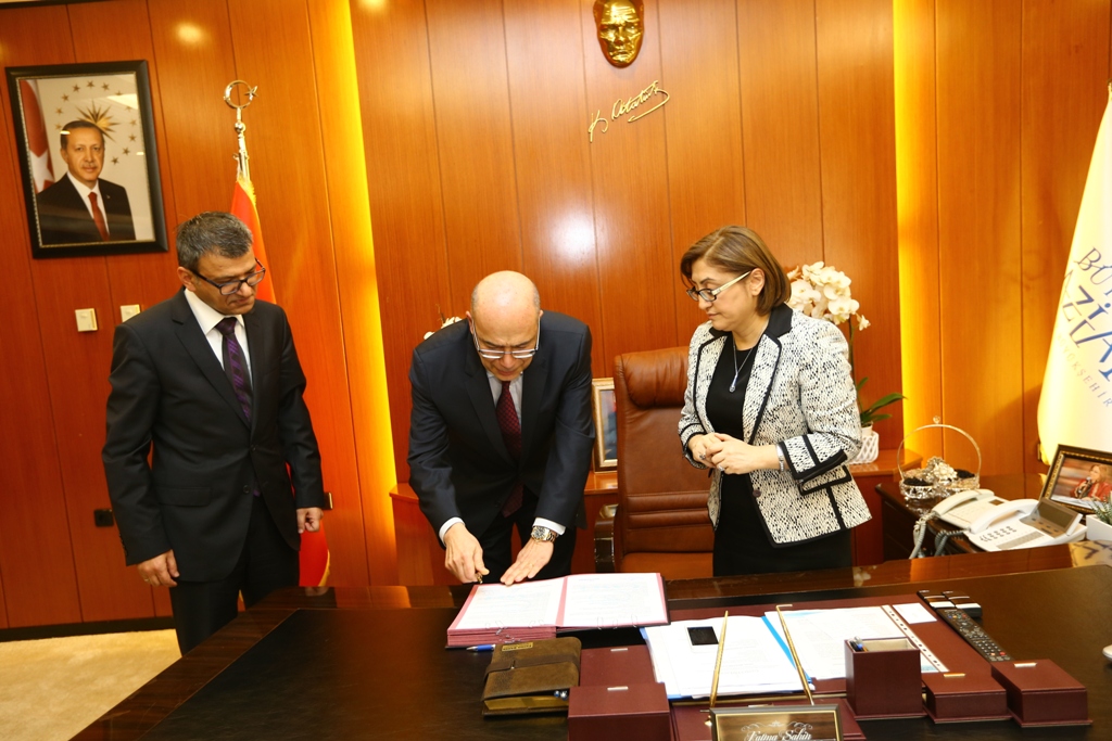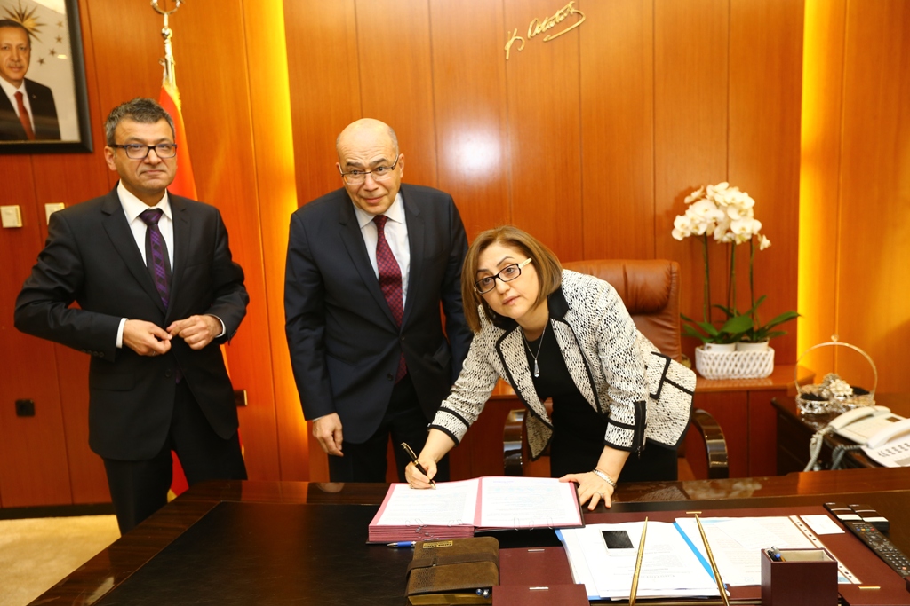 İçmesuyu projesi imza törenine Gaziantep Büyükşehir Belediye Başkanı Fatma Şahin, GASKİ Genel Müdürü Hüseyin Sönmezler ve DOLSAR firması yetkilileri katıldı.