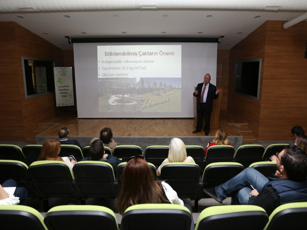 Çatılarda bitkilendirme çeşitleri ve yararlarının anlatıldığı seminer, iki ayrı bölümde gerçekleşti. İlkinde TSE CEN TC254 ayna komitesi başkanı Josef Bonfil, çatılarıda bitkilendirme ve çeşitlendirmeleri anlattı. Sunum eşliğinde örnekler veren Bonfil, çatıların bitkilendirilmesinin turizm açısından önemine dikkat çekti.