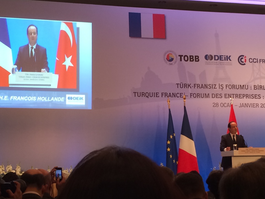 François Hollande, 27–28 Ocak 2014 tarihleri arasında Türkiye’ye gerçekleştirdiği ziyaret kapsamında, Türkiye Odalar ve Borsalar Birliği (TOBB) tarafından Four Seasons Bosphorus Otel’de düzenlenen Türk-Fransız Ekonomik Forumuna katıldı.