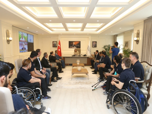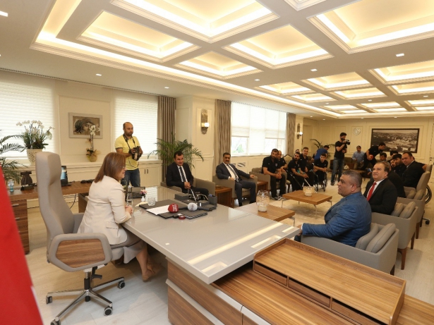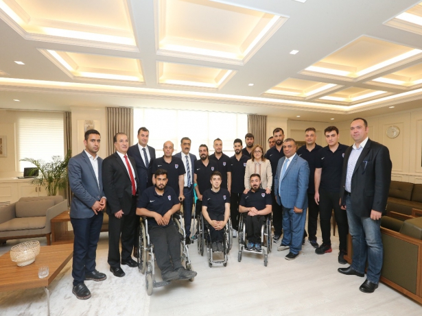 Kulüp Asbaşkanı Mehmet Aytaç’ın da yer aldığı ziyarette Başkan Şahin, engelli basketbolcular ile tek tek tokalaştı ve hatıra fotoğrafı çektirdi.