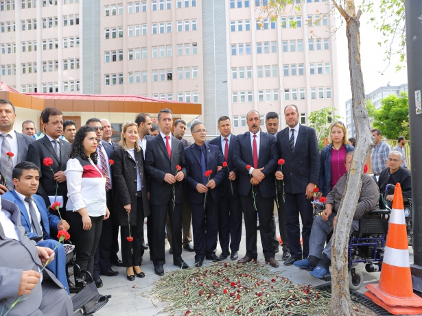Geçen 1 Mayıs günü Gaziantep Emniyet Müdürlüğü’ne yönelik düzenlenen ve 3 polisin şehit olduğu terör saldırısının ardından Aile ve Sosyal Politikalar İl Müdürü İsmet Zor ile Gaziantep Büyükşehir Belediyesi Engeli Daire Başkanlığı yetkilileri, işitme, görme ve bedensel engeliler dernekleri temsilcilerinin oluşturduğu 50 kişilik grup patlamanın yaşandığı bölgeye karanfil bıraktı.