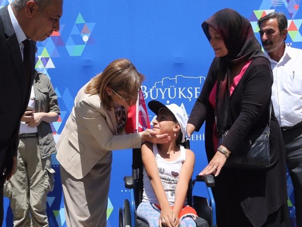 Gaziantep Büyükşehir Belediye Başkanı Fatma Şahin, belediye önünde düzenlenen törende, kenti engelli dostu bir şehre dönüştürmek için yola çıktıklarını söyledi.
