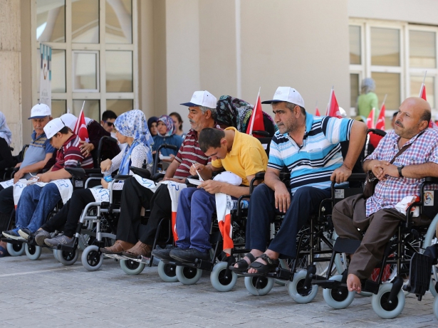 Konuşmaların ardından Şahin, Büyükşehir Belediyesi Genel Sekreter Yardımcısı Serdar Tolay ve Çelebi, engellilere, tekerlekli sandalye, sesli saat ve beyaz baston dağıttı.