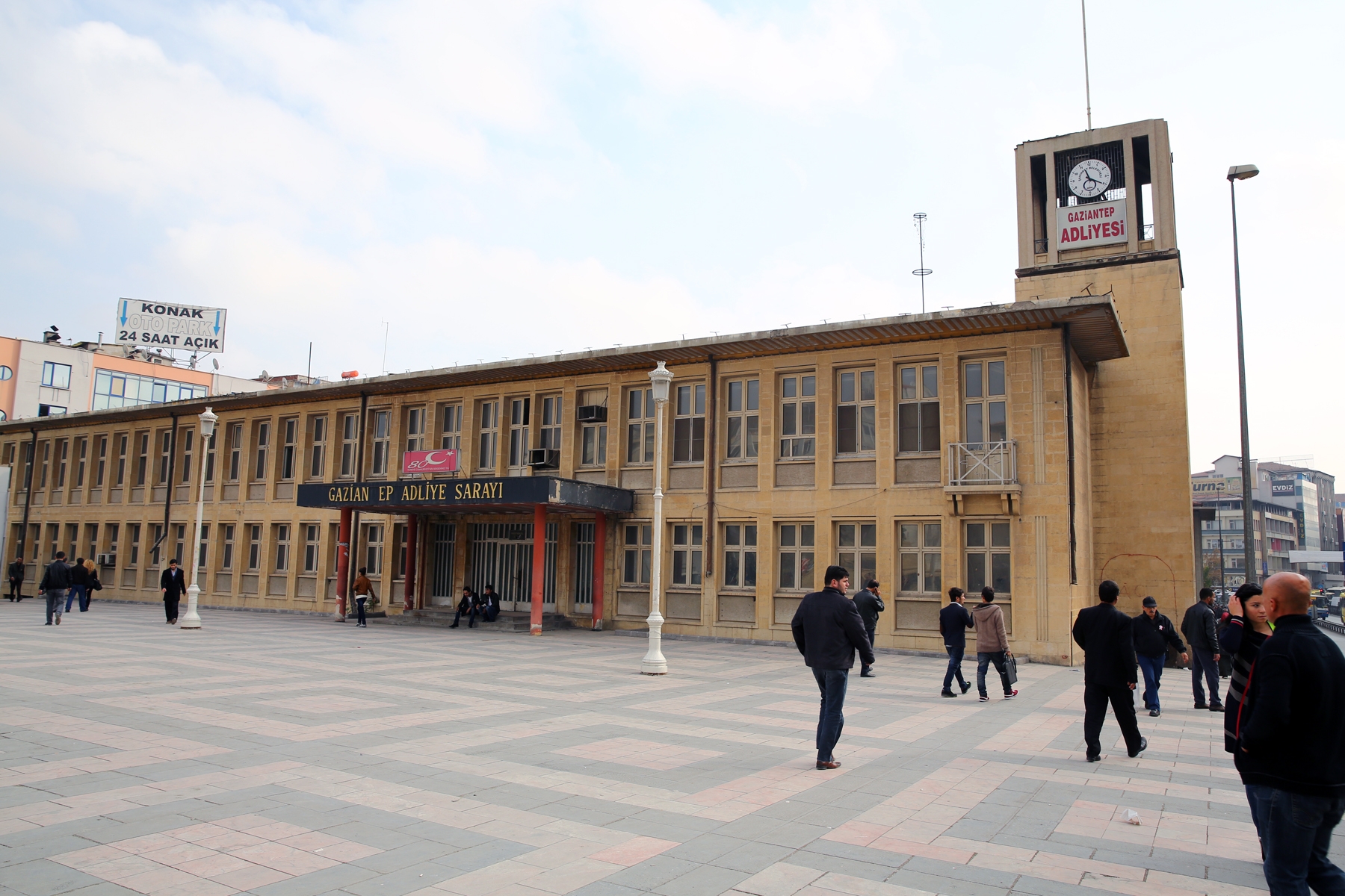 1950’li yıllarda Cumhuriyet döneminin yapısı olan bina, Hükümet Konağı–Adliye Binası olarak inşa edilmiş. Eski şehir merkezi ve buluşma noktasında olma özelliğine sahip kompleks yapı, U plana sahip. Kesme taş malzeme ile yapılmış ve fonksiyonuna uygun olarak cephelerde pencere açıklıklarına yer verilmiş. Saat kulesi ve yüksek sütunlu girişleri ile anıtsal bir görünüme sahip olan bina, kent belleğinde önemli bir yere sahip olup, Gaziantep’in büyüyüp gelişmesine, acı ve tatlı birçok olaylara şahitlik etti.