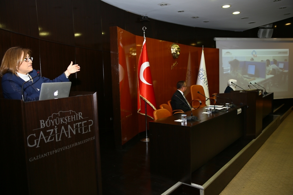 “Çalışmalarımızı böyle dönem dönem meclis üyelerimiz ile paylaşmak istiyoruz” diyen Şahin, katılımcı belediye, alt yapı çalışmaları (yol açma ve asfaltlama), eğitim çalışmaları, asri mezarlık, yaz kampları, GASKİ çalışmaları, Suriyelilere yönelik çalışmaları ve ilçelerde yapılan çalışmalarını ana başlıklarıyla meclis üyelerini bilgilendirdi.