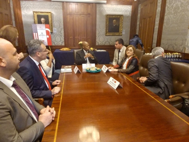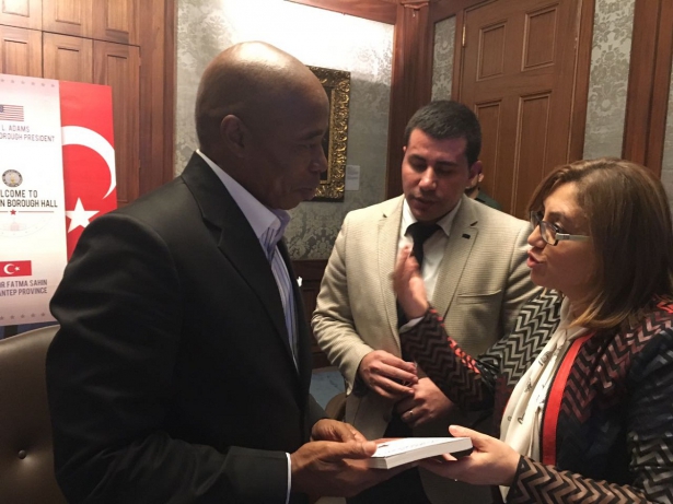 Şahin, Eric Adams’ın makamındaki ziyarette, Büyükşehir Belediyesinin Suriyelilere yönelik yaptığı çalışmalar ve Gaziantep'in tarih, kültür ve turizmini sunum eşliğinde anlattı.